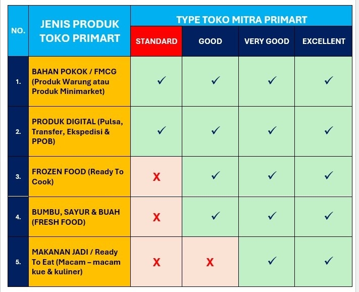 Penambahan Jenis Produk disetiap Toko Mitra Primart akan ditentukan dari / sesuai dengan Performa Toko Mitra dan Penilaian Kelayakan Pasar!